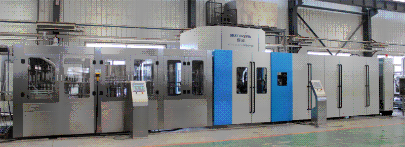 日前,湛江市椰湛飲料有限公司訂購的吹瓶/沖瓶/灌裝/旋蓋四合一體式機(jī)組,在廊坊百冠總裝車間順利完成了出廠測試,將于近日發(fā)貨客戶現(xiàn)場。該設(shè)備生產(chǎn)速度為20000瓶/小時,將用以灌裝“椰樹牌”天然泉水。