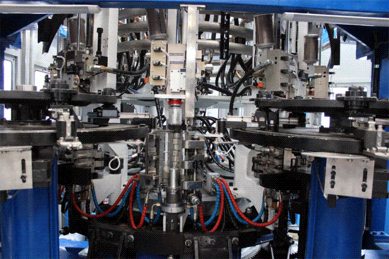 吹瓶部分實(shí)施了機(jī)械手雙層軌道曲線設(shè)計(jì)、吹瓶機(jī)模號加裝壓力檢測裝置、主吹輪氣源進(jìn)出采用旋轉(zhuǎn)式動靜密封氣套(發(fā)明專利產(chǎn)品)、吹瓶機(jī)主吹輪采用旋轉(zhuǎn)式機(jī)械補(bǔ)償水套等多項(xiàng)技改措施,大大加強(qiáng)了吹瓶運(yùn)行的安全性、穩(wěn)定性,并延長了關(guān)鍵部件的使用壽命。